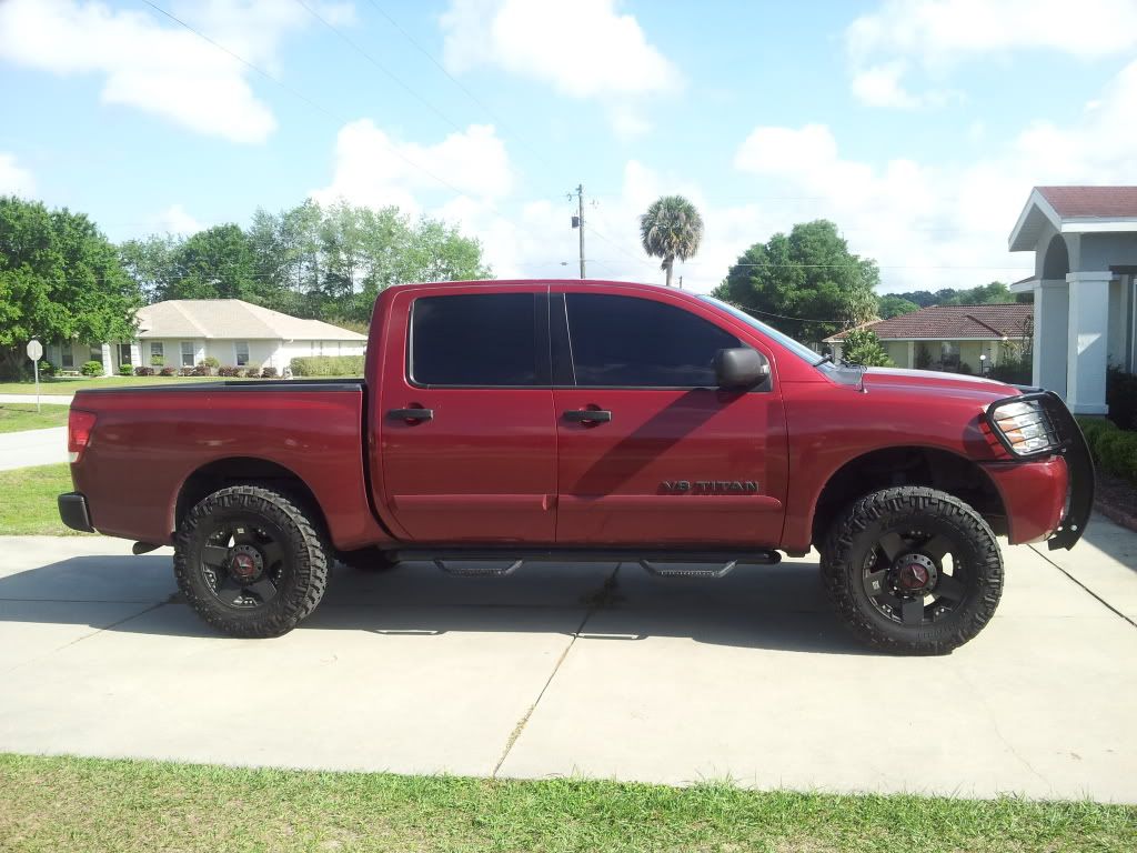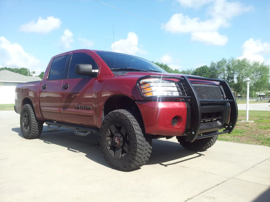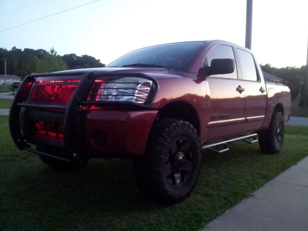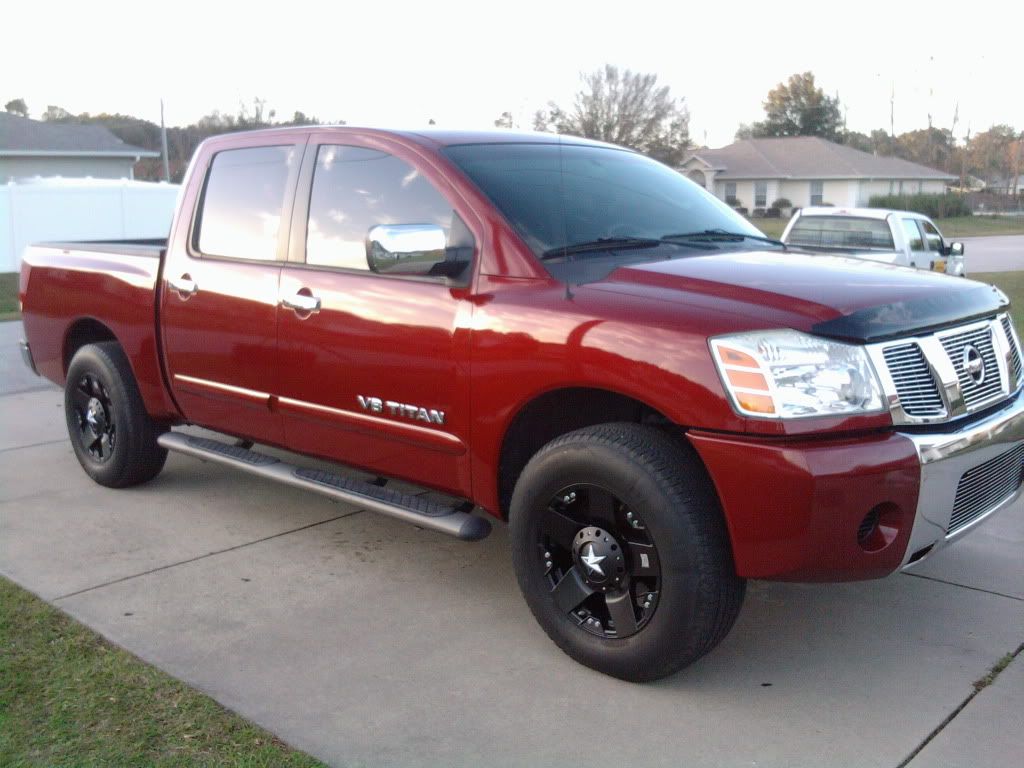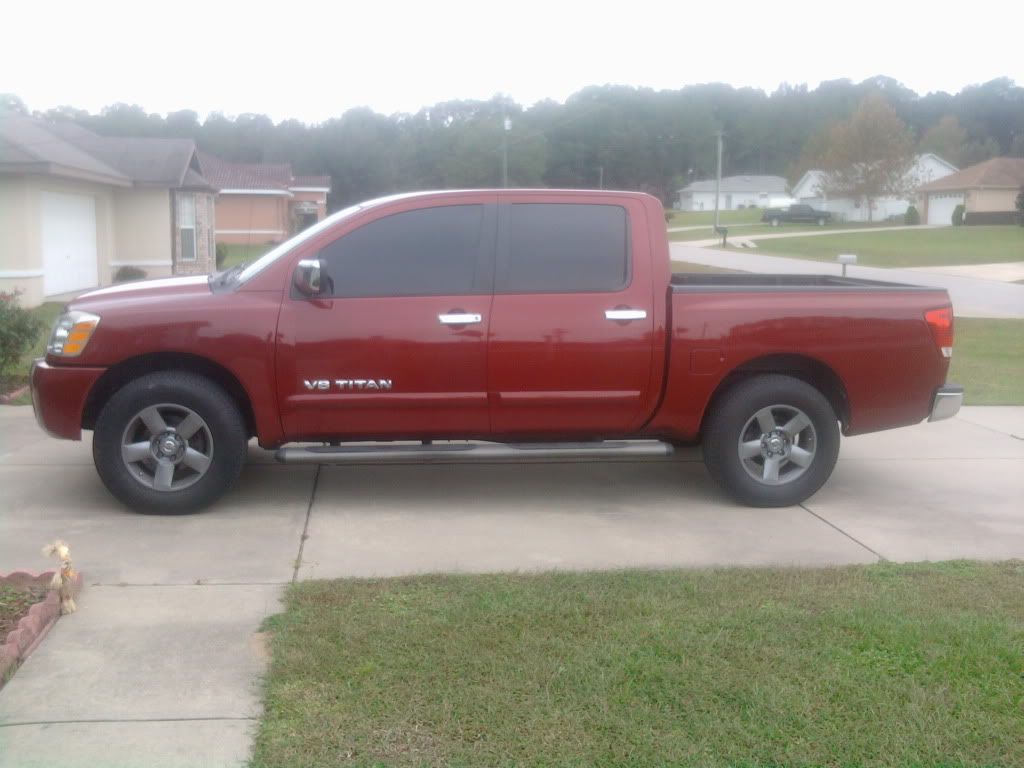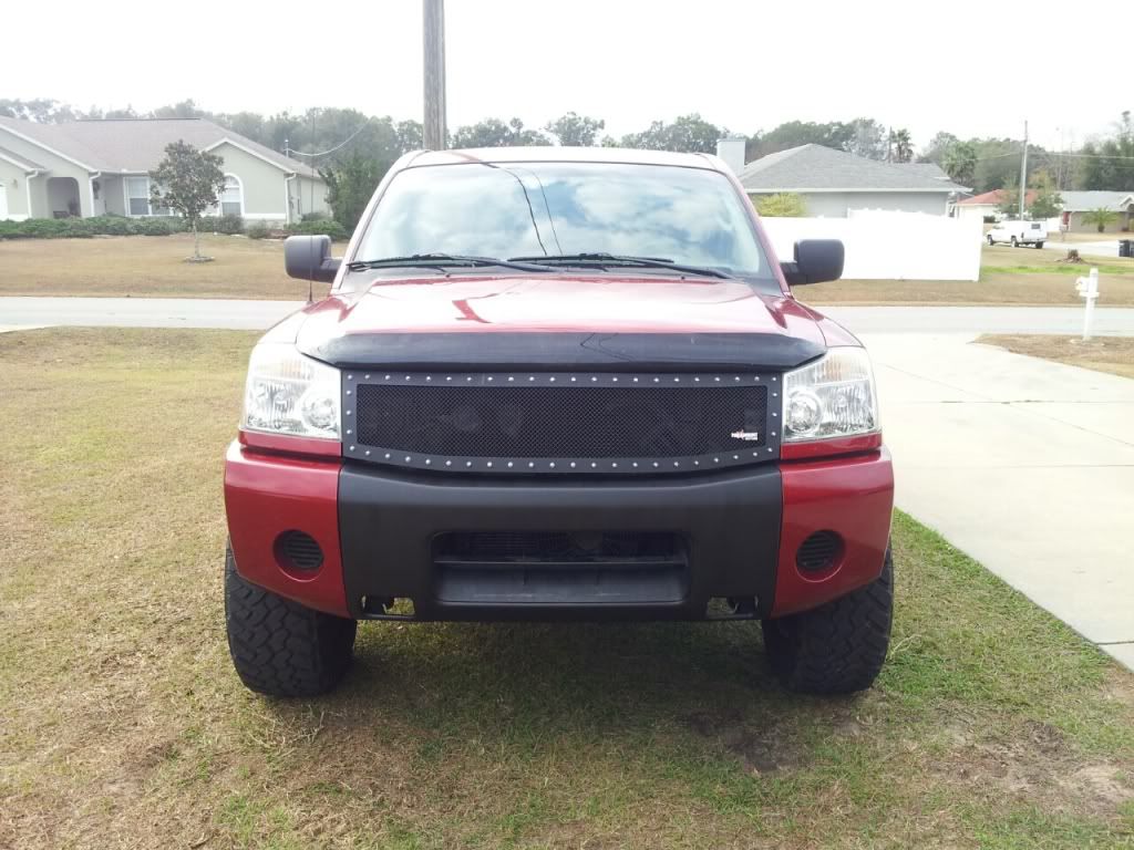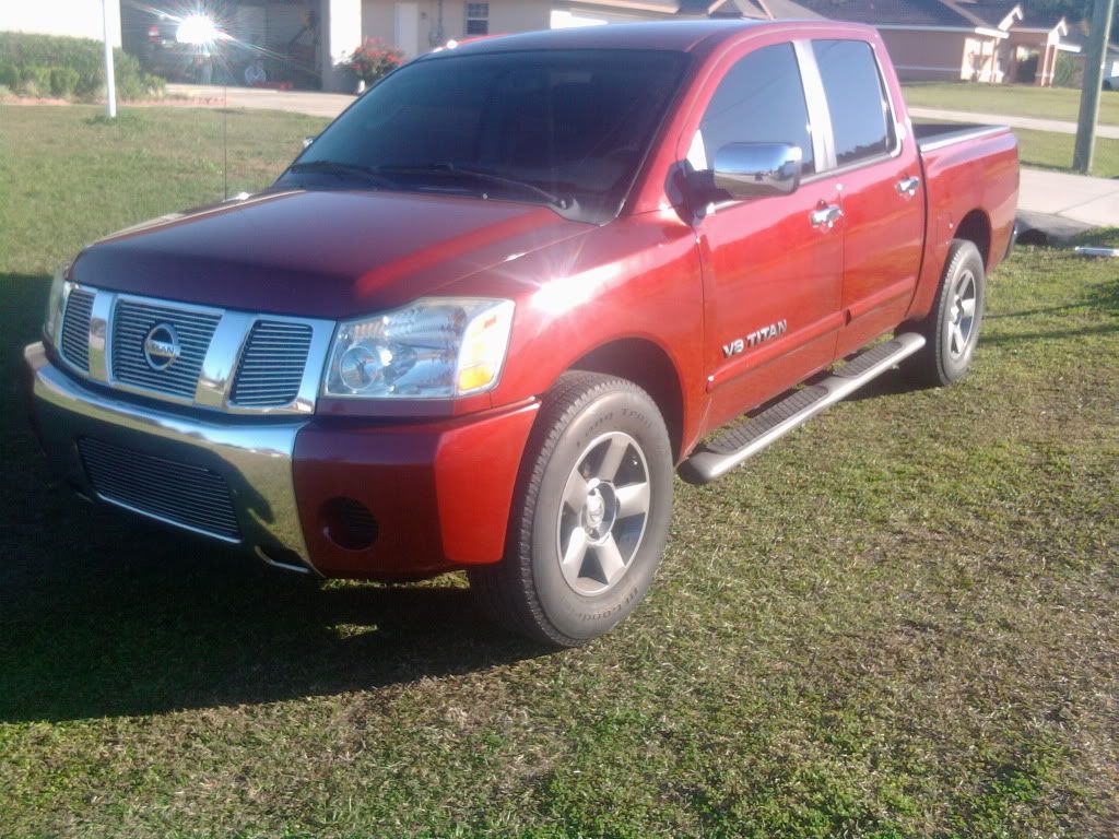 Here it is on day 1. 2005 Nissan Titan CC SE, Red Brawn, bone stock.