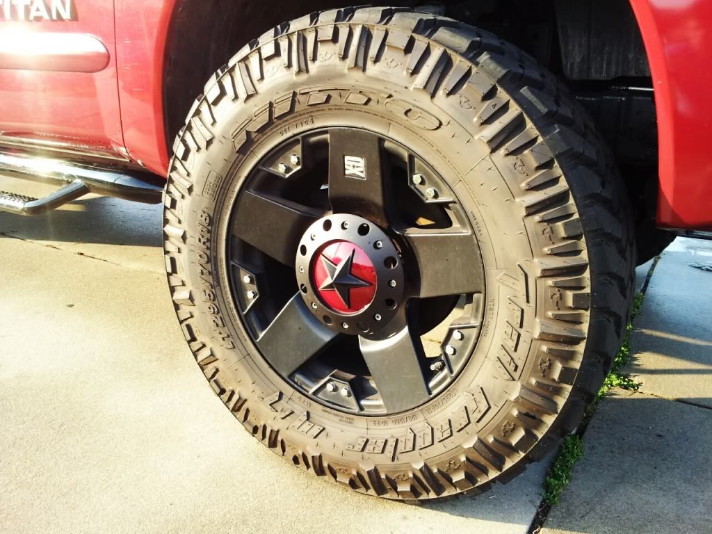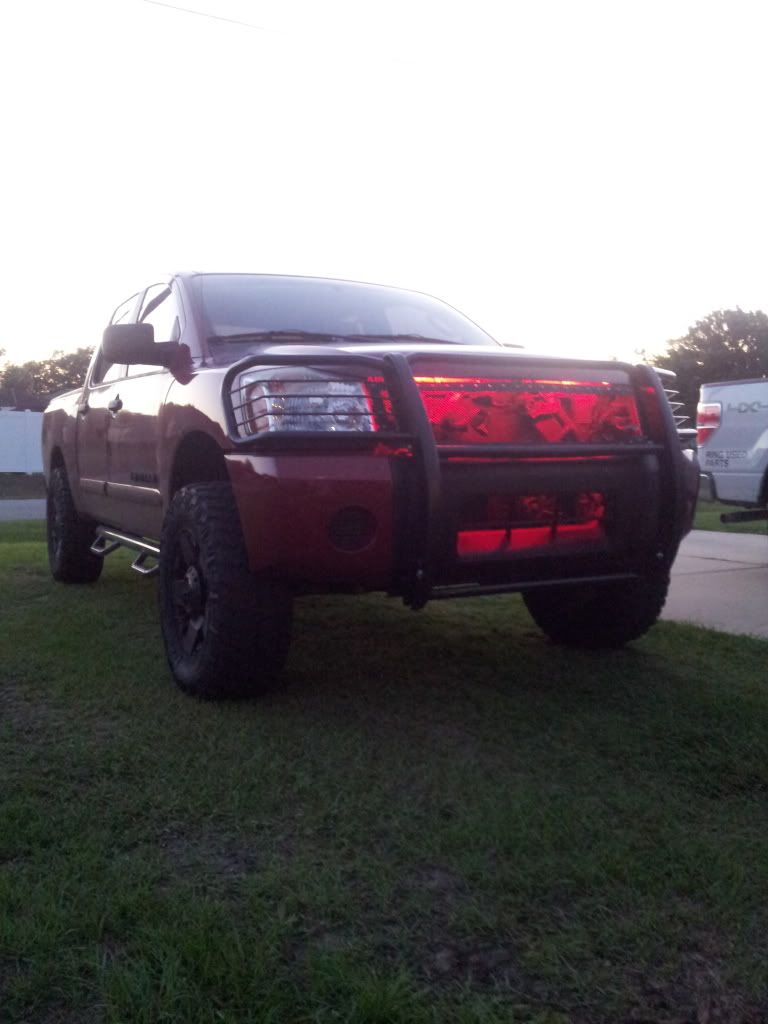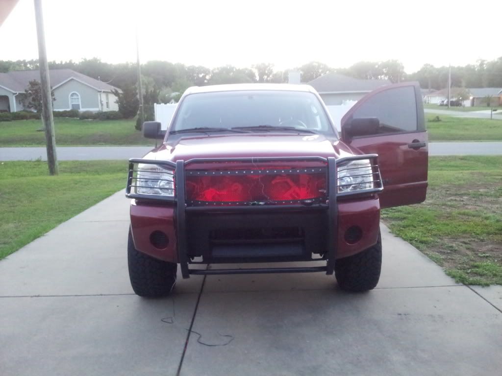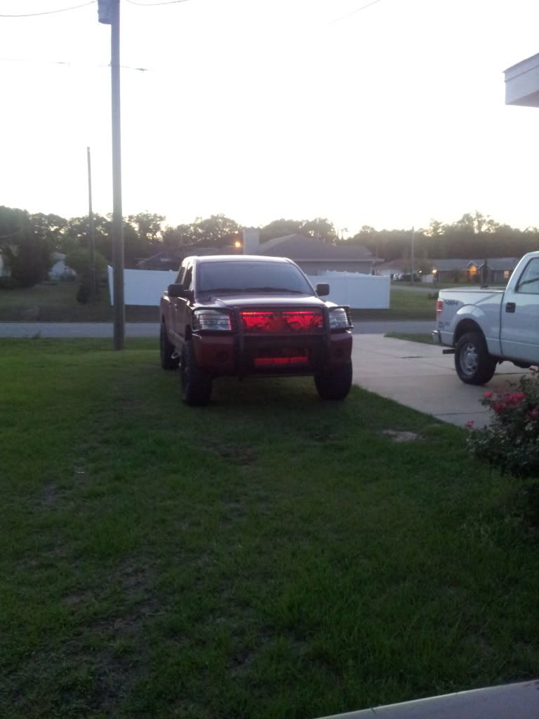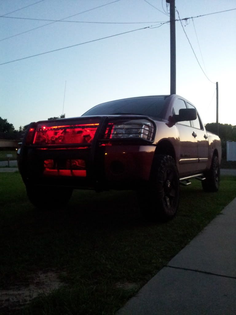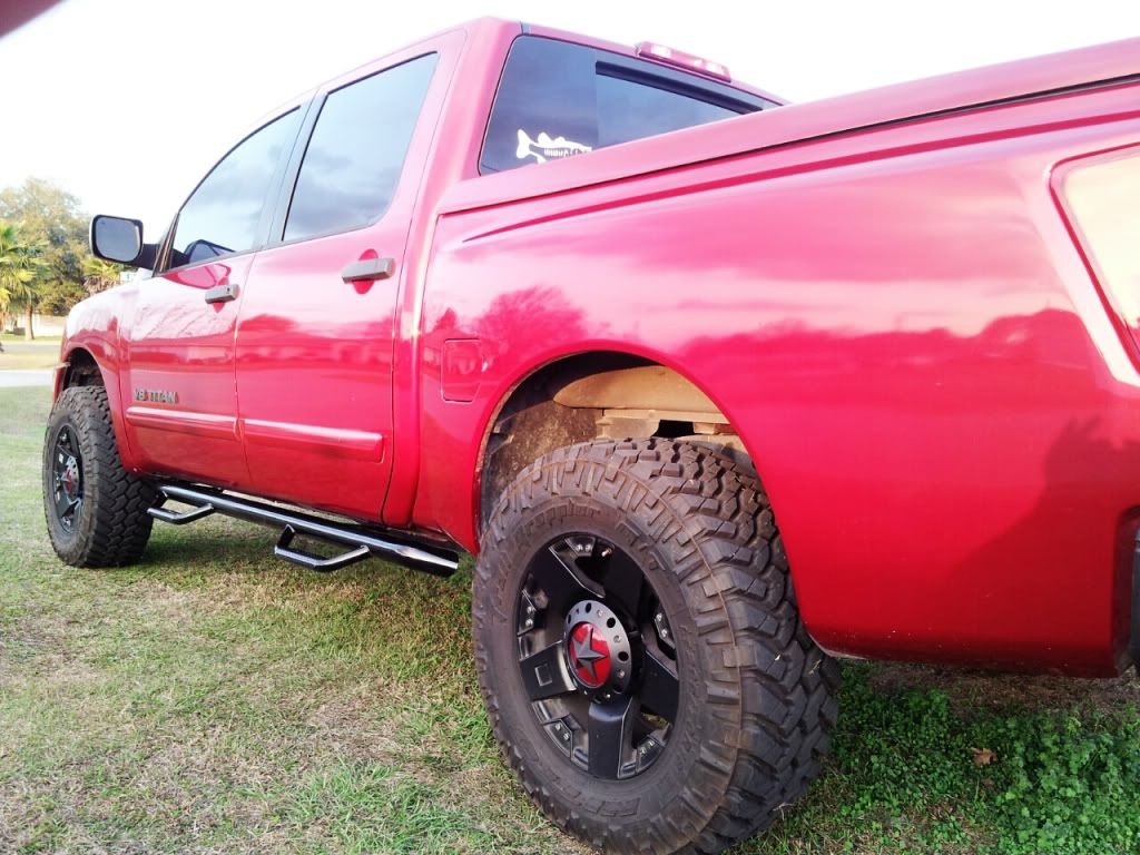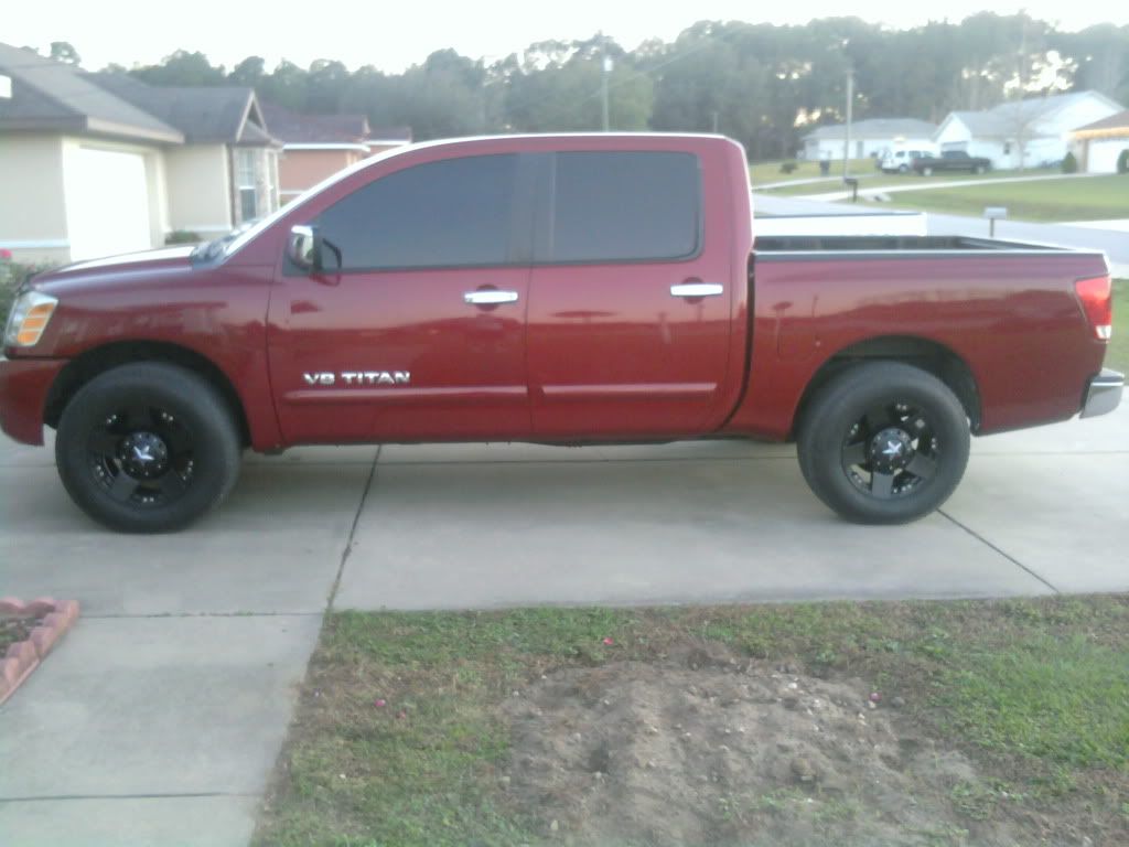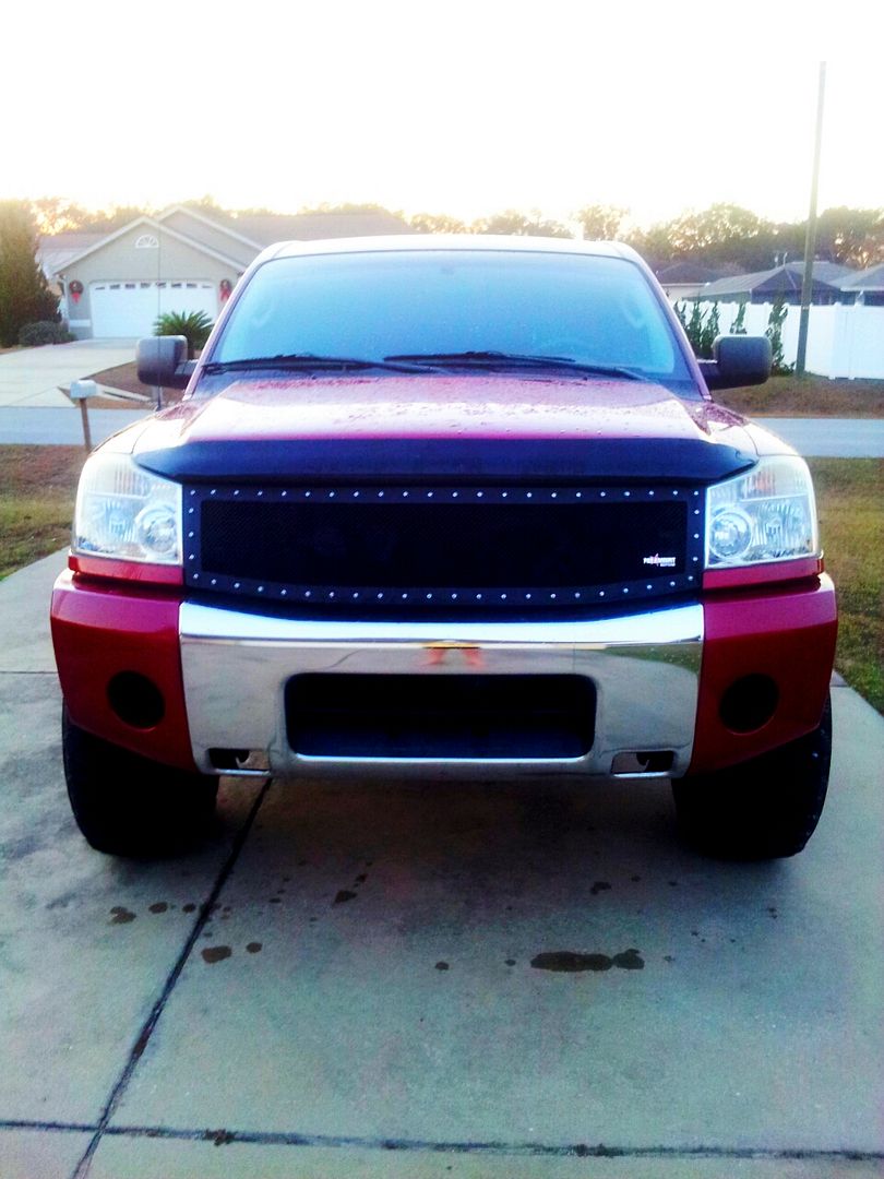 Here it is on day 1. 2005 Nissan Titan CC SE, Red Brawn, bone stock.